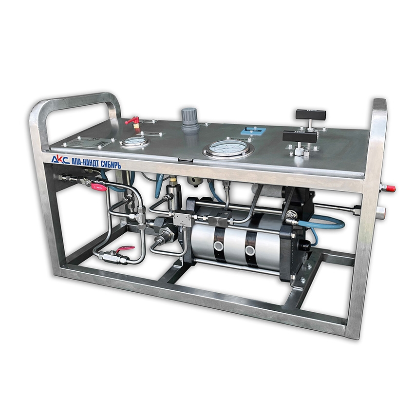 Рабочее давление до 5172 бар. Диапазон давлений воздуха в приводе составляет от 1,7 бара до 10 бар. Производительность станции до 0,3 л/мин.