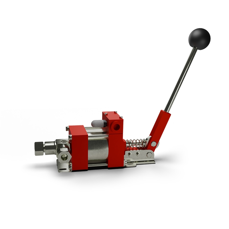 Пневматический поршневой насос Maximator M 111-HL, оснащенный ручным дублером для нагнетания давления.
