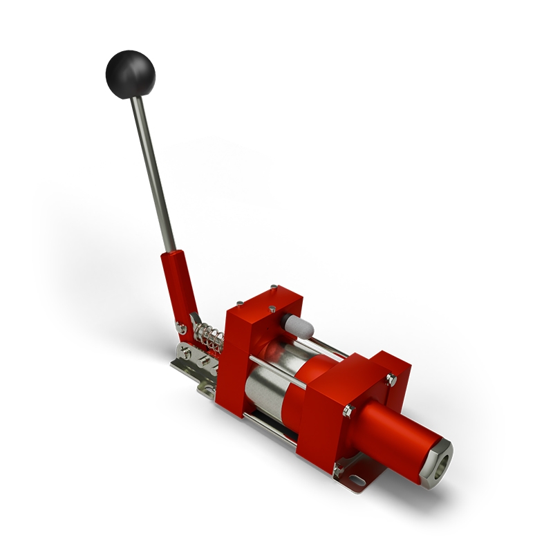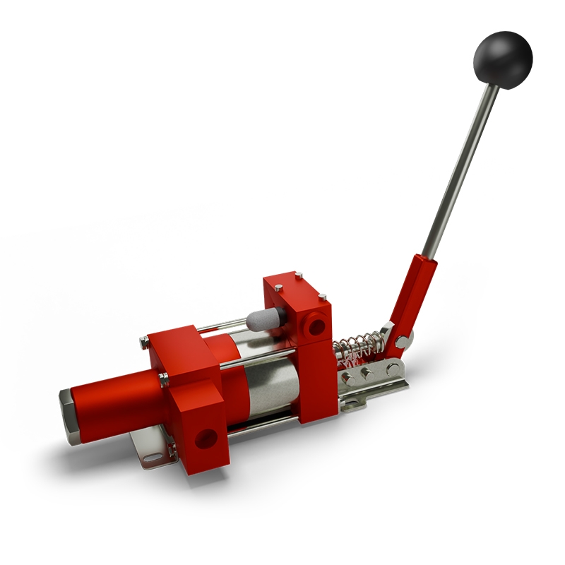 Насос высокого давления с пневматическим приводом (мультипликатор) Maximator M 8-HL, оснащенный ручным дублером для нагнетания давления.