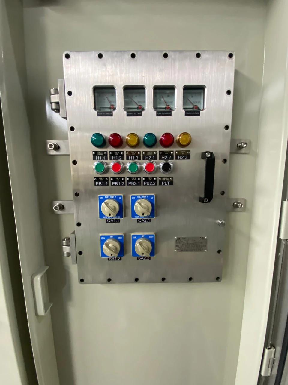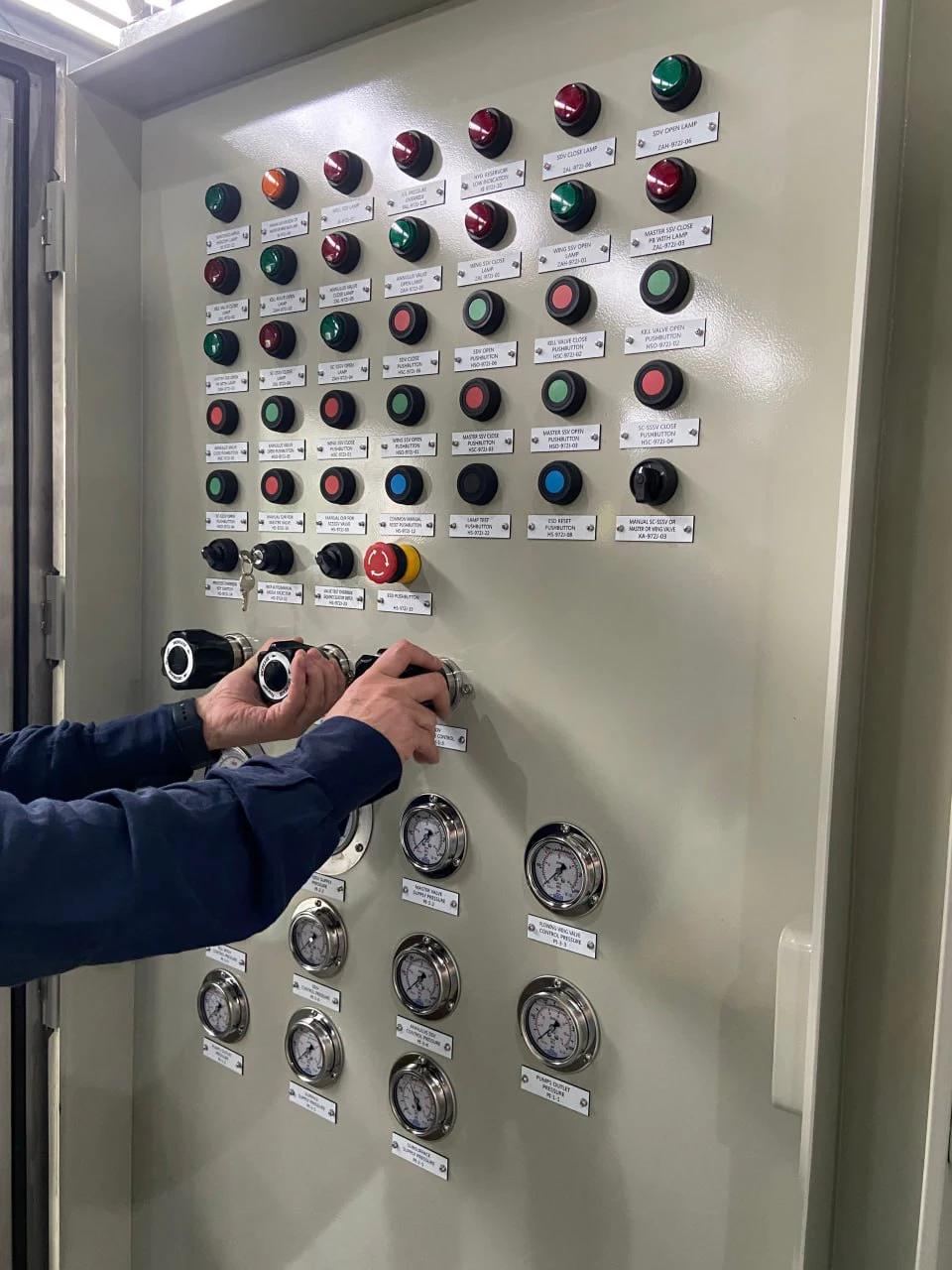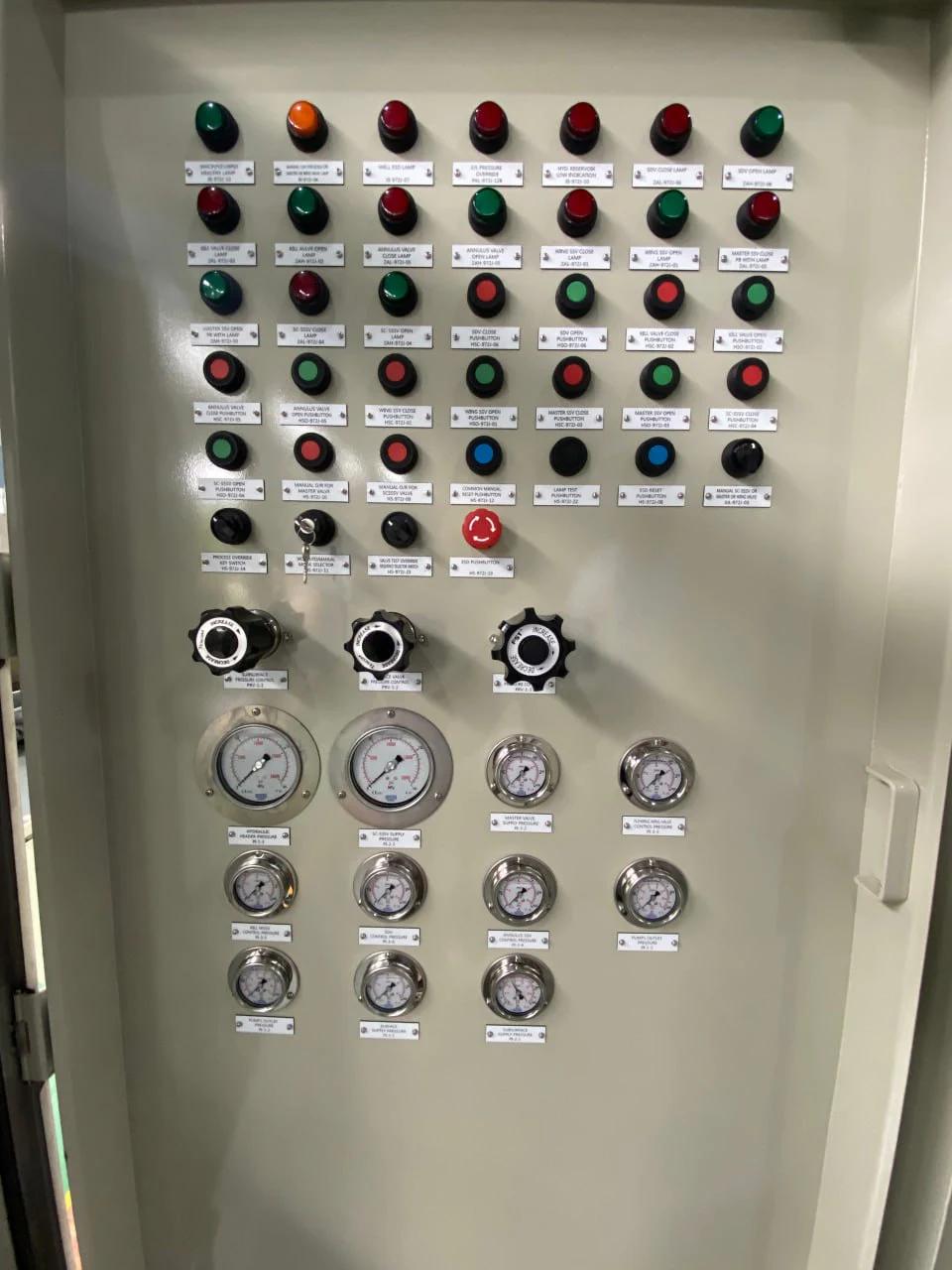 В такой панели управления используется пневматический и гидравлический принцип управления. Системы связи и контроля интегрированы с RTU и SCADA, что позволяет осуществлять местный и дистанционный контроль работы. Панель управления устьем скважины подходит для применения в среде, соответствующей стандарту NACE.
