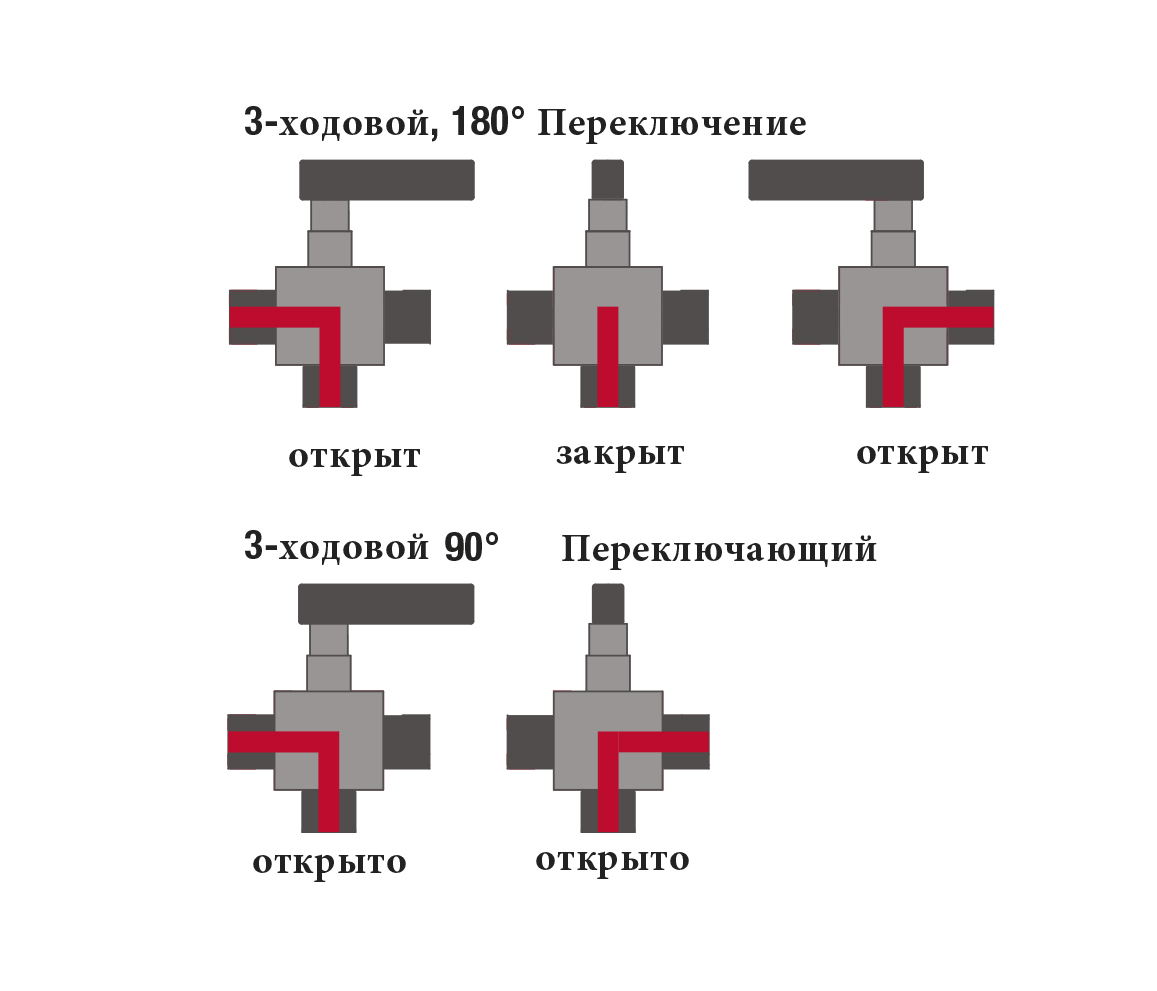 Шаровые краны доступны в исполнениях с 90˚ и 180˚ диапазонами вращения.